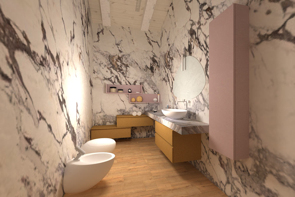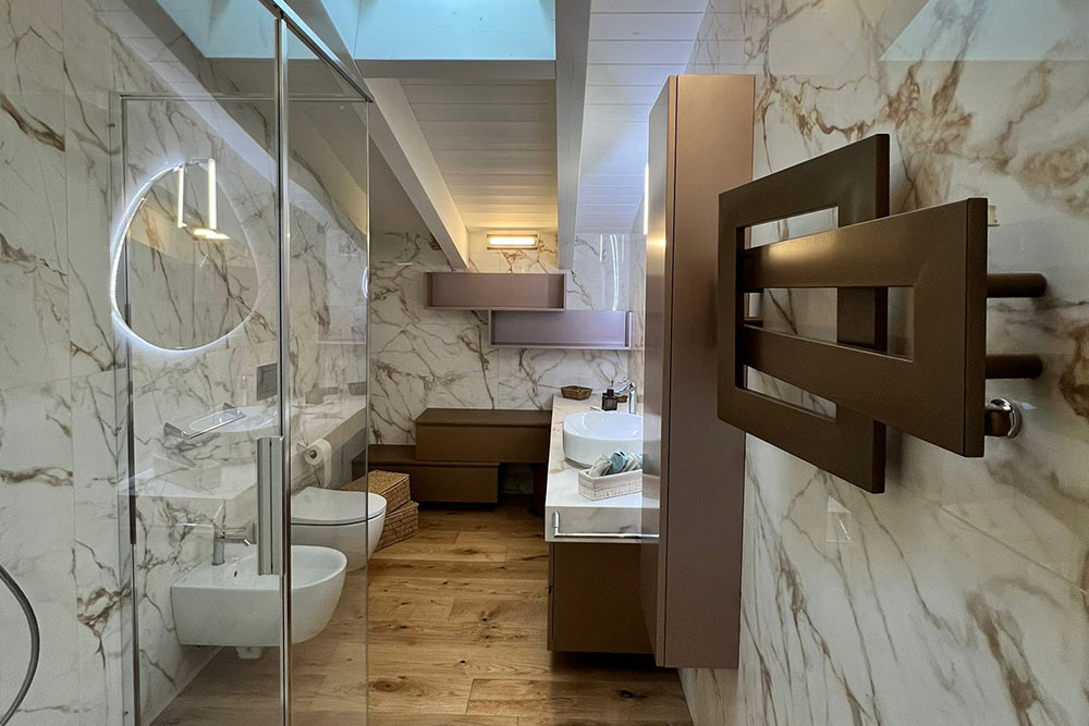 I bagni sono stati scelti cercando di abbinare dei colori di laccatura che si potessero abbinare ai rivestimenti in gres scelti dai clienti per rivestire le pareti delle stanze. Scelta resa molto facile grazie alle svariate colorazioni offerte da Compab che permette ai propri clienti di utilizzare una palette dì colori davvero molto completa.