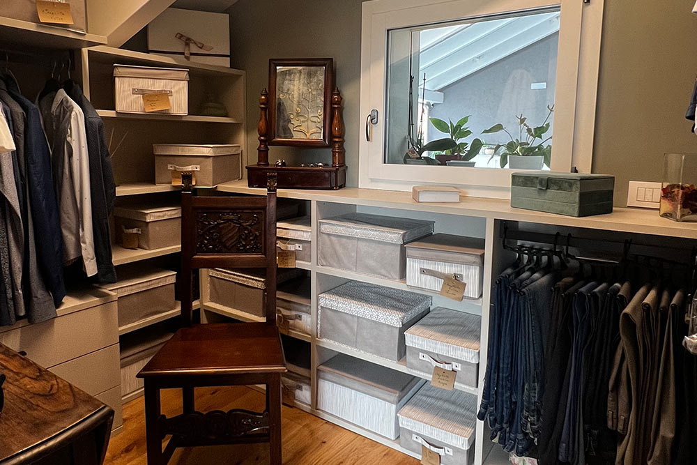 La camera della figlia, ormai adulta, è stata realizzata utilizzando arredi di Maronese e l’armadio in tamburato e laccato opaco di Olivieri.